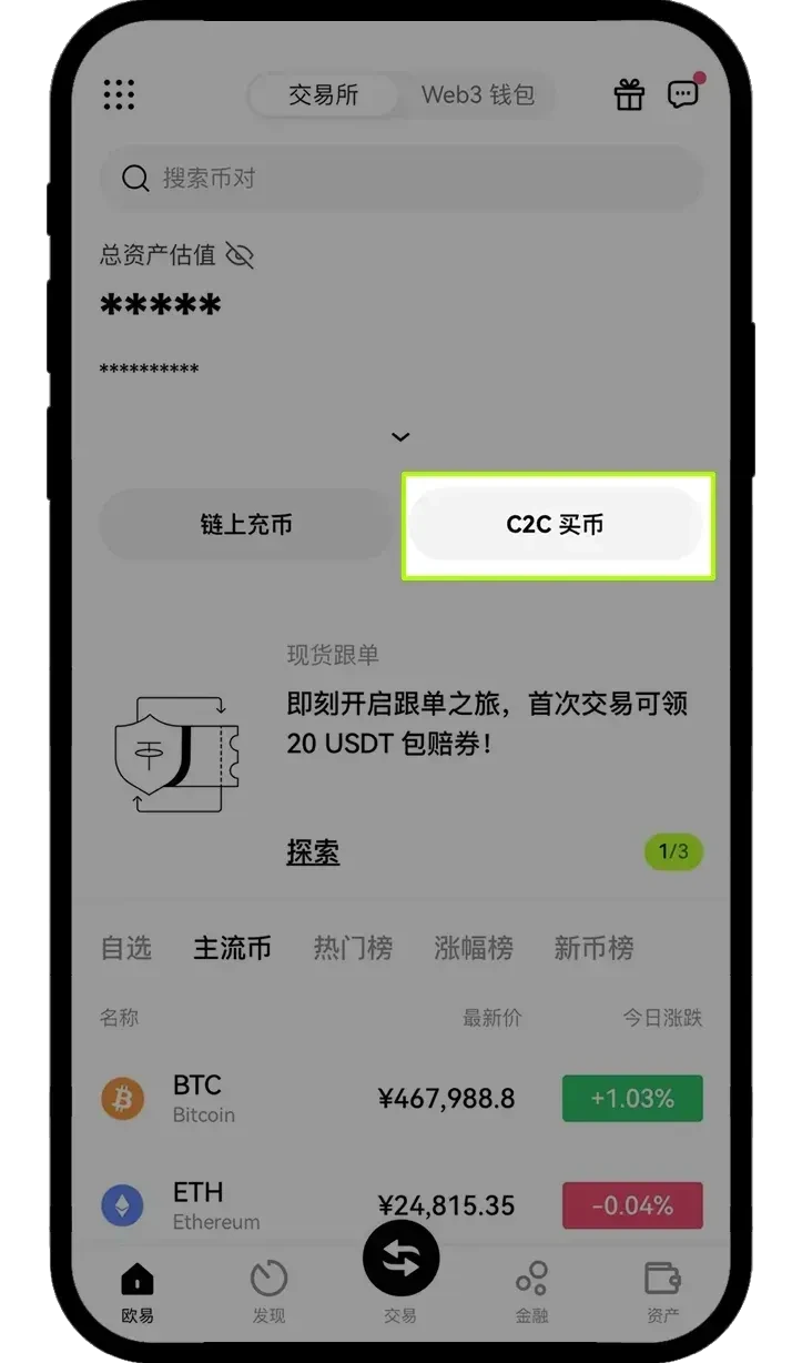 点击 App 首页左上角图标 -> 底部【关于欧易】 -> 【检查更新】。